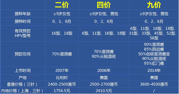 二价适用9-25岁,四价适用20-45岁,九价适用16-26岁。