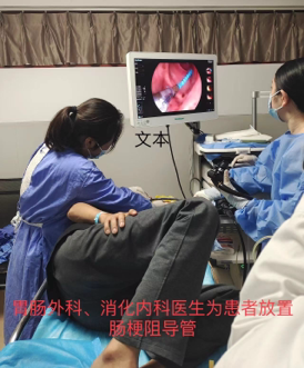 因再次手术效果不佳且风险大,而患者为放置肠梗阻导管的适宜人群。金医生向患者家属详细交代病情及治疗方案,获得家属认可后,在消化内科、医学影像部的协助下为患者行肠梗阻导管放置技术。