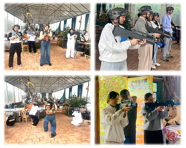 随后,在激烈的真人CS团队对抗中,各小组战术协同、默契配合,在“战场”上挥洒汗水,锤炼了应变能力与团队精神。最后的主题协作挑战游戏,更是将现场氛围推向高潮,大家齐心协力完成任务,充分展现了我院青年职工的活力与创造力。