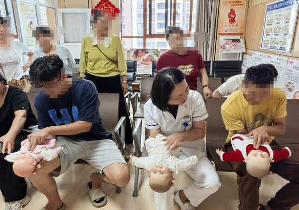 更重要的是,我们直面那些可能让父母焦虑的“万一”。借助模拟婴儿,护士们耐心演示:当宝宝不小心呛奶时,第一反应应该怎么做?如果发生异物卡喉,那个能救命的“海姆立克急救法”该如何正确操作?从理论到实践,从意识到技能,我们希望能将安全的种子,深深植根于每一个家庭。