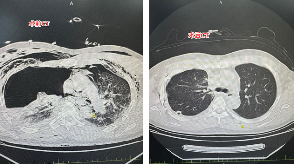 术后,患者被转入重症监护室严密监测。支气管断裂吻合术后最易出现吻合口漏或狭窄,医护人员每两小时听诊呼吸音,术后第二天复查胸部CT,确认吻合口愈合良好。术后第六天,患者成功脱离呼吸机,转回胸外科病房;在全体医护人员的精心照料下,患者快速康复,行动自如,于11月11日顺利出院。
