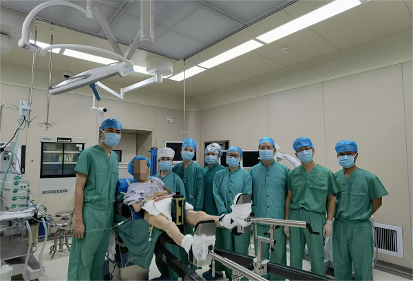 团队在术前进行多学科会诊,全面评估患者状况,制定专属麻醉方案。术中采用超声引导下神经阻滞联合改良腰麻技术,在保证镇痛效果的同时,最大限度减少对循环和呼吸的影响。护理团队针对患者脊柱畸形,精心摆放并固定体位,确保手术顺利进行并预防压疮。骨外二科团队高效完成手术操作,患者术后当天即可下床活动。